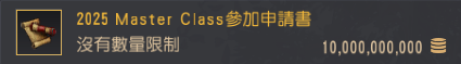 ② 報名申請後向位於自由決鬥場 1伺服器的<2025 Master Class> 亨羅NPC購買申請書道具。