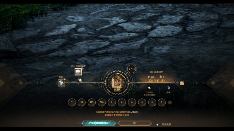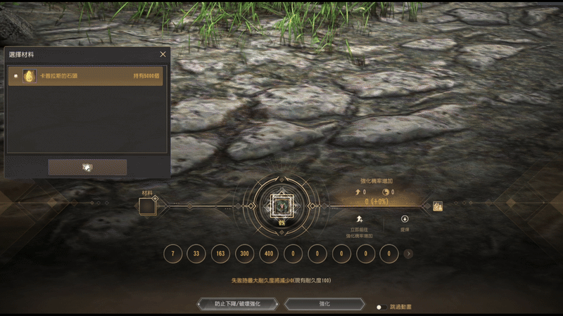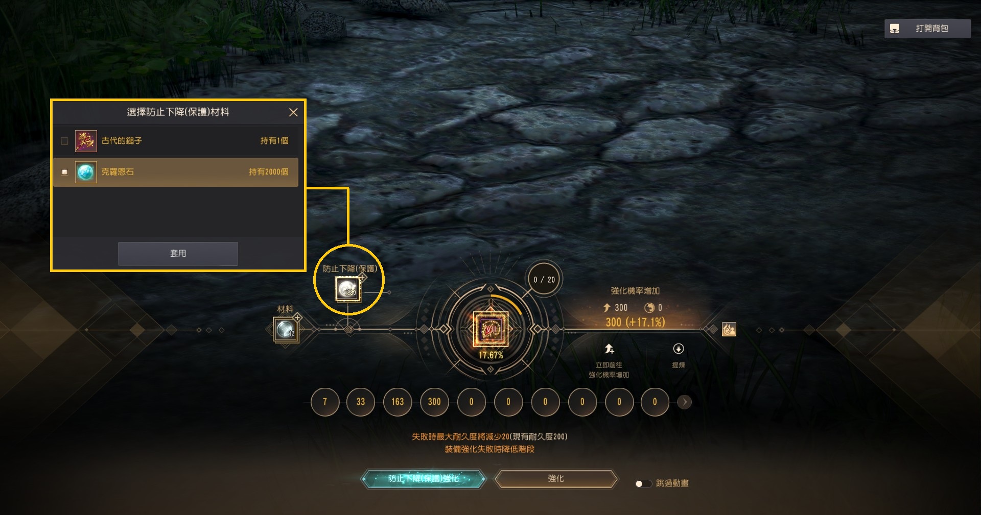 - 點擊「防止下降/破壞」區塊後,可以選擇能夠防止強化下降的材料道具