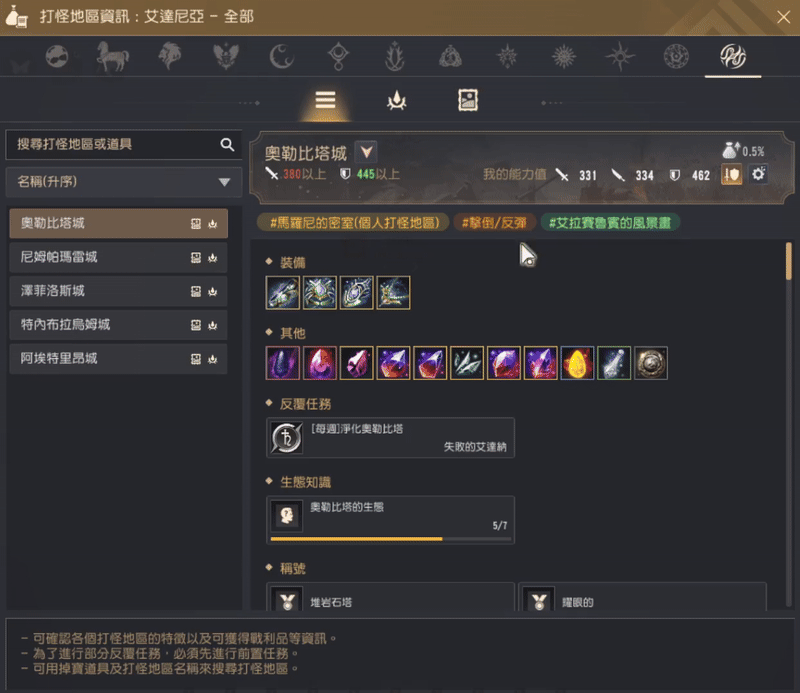 - 在知識(H)視窗中,關於艾達尼亞相關NPC的未獲得知識提示變得更加詳細