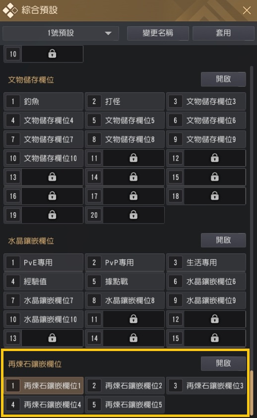- 可以將再煉石設為預設使用,並新增至綜合預設中