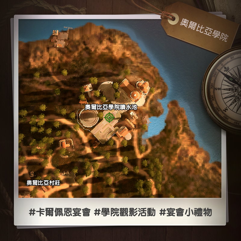 移動至奧爾比亞村莊北邊的「奧爾比亞學院噴水池」