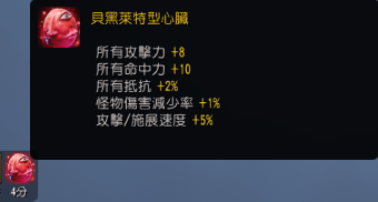 - 貝黑萊特型心臟是透過電視動畫《烙印勇士》X《黑色沙漠》合作活動,變更貝爾的心臟的外型及名稱的道具