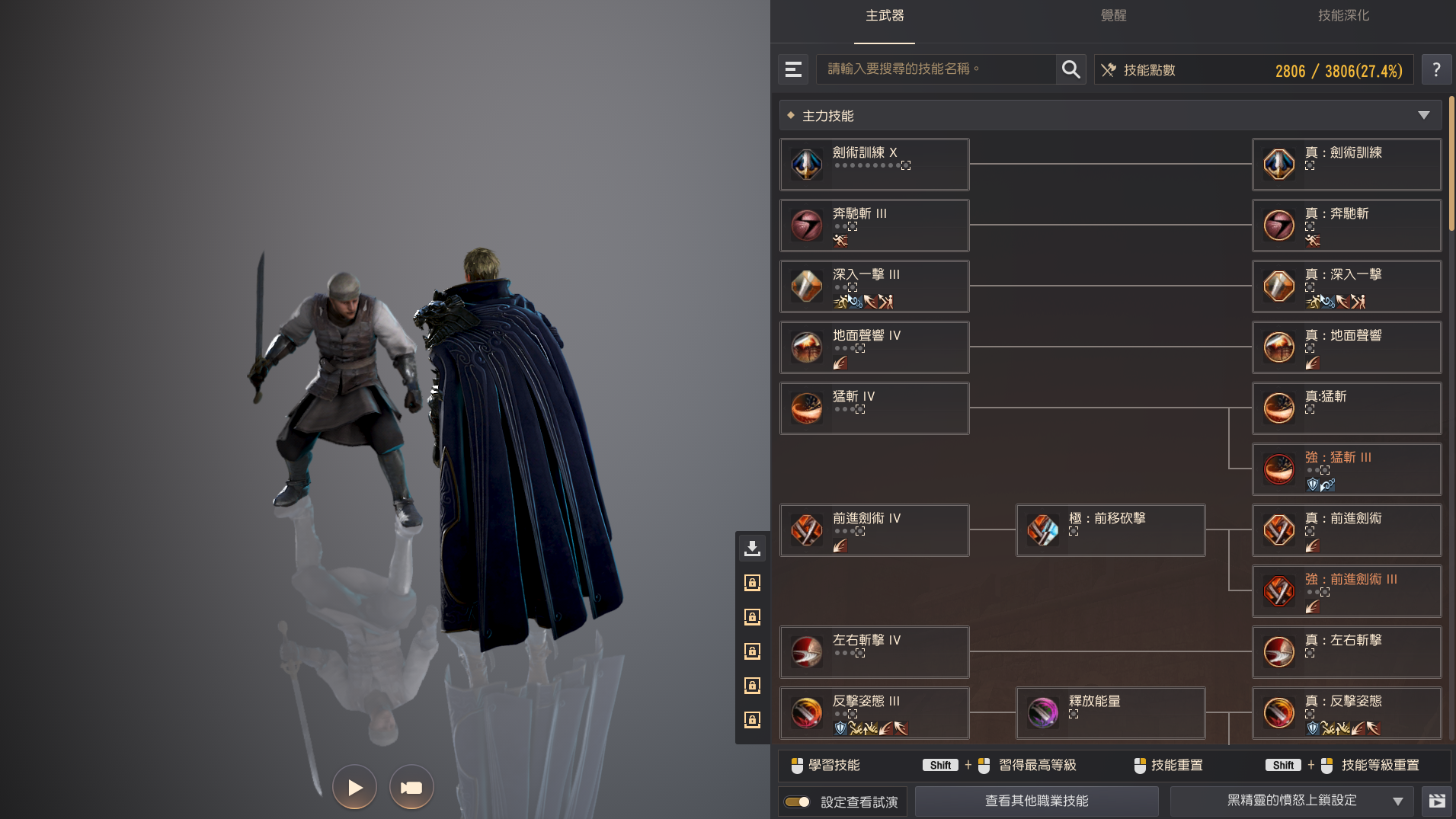 - 原本配置在技能視窗(K)下方的「設定技能欄」、「設置冷卻時間」、「黑精靈的憤怒上鎖設定」等功能,整合為單一的「技能設定」按鈕