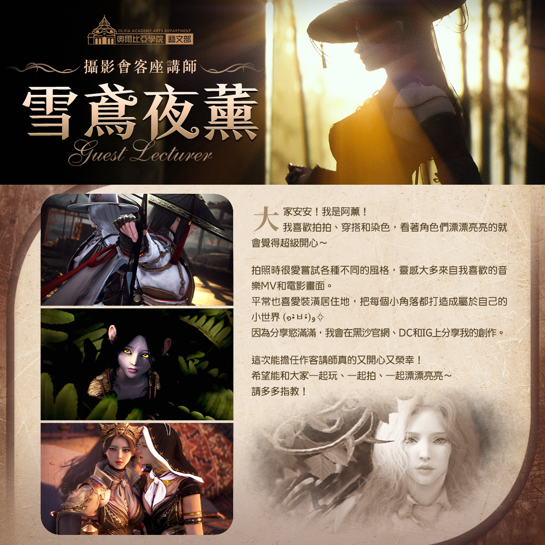 由奧爾比亞學院藝文部協辦,邀請客座講師舉行的攝影同好交流會。