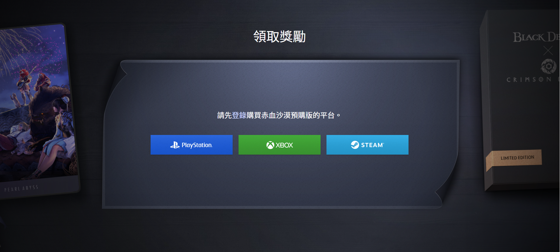 使用購買赤血沙漠預購特典的平台帳號登入。