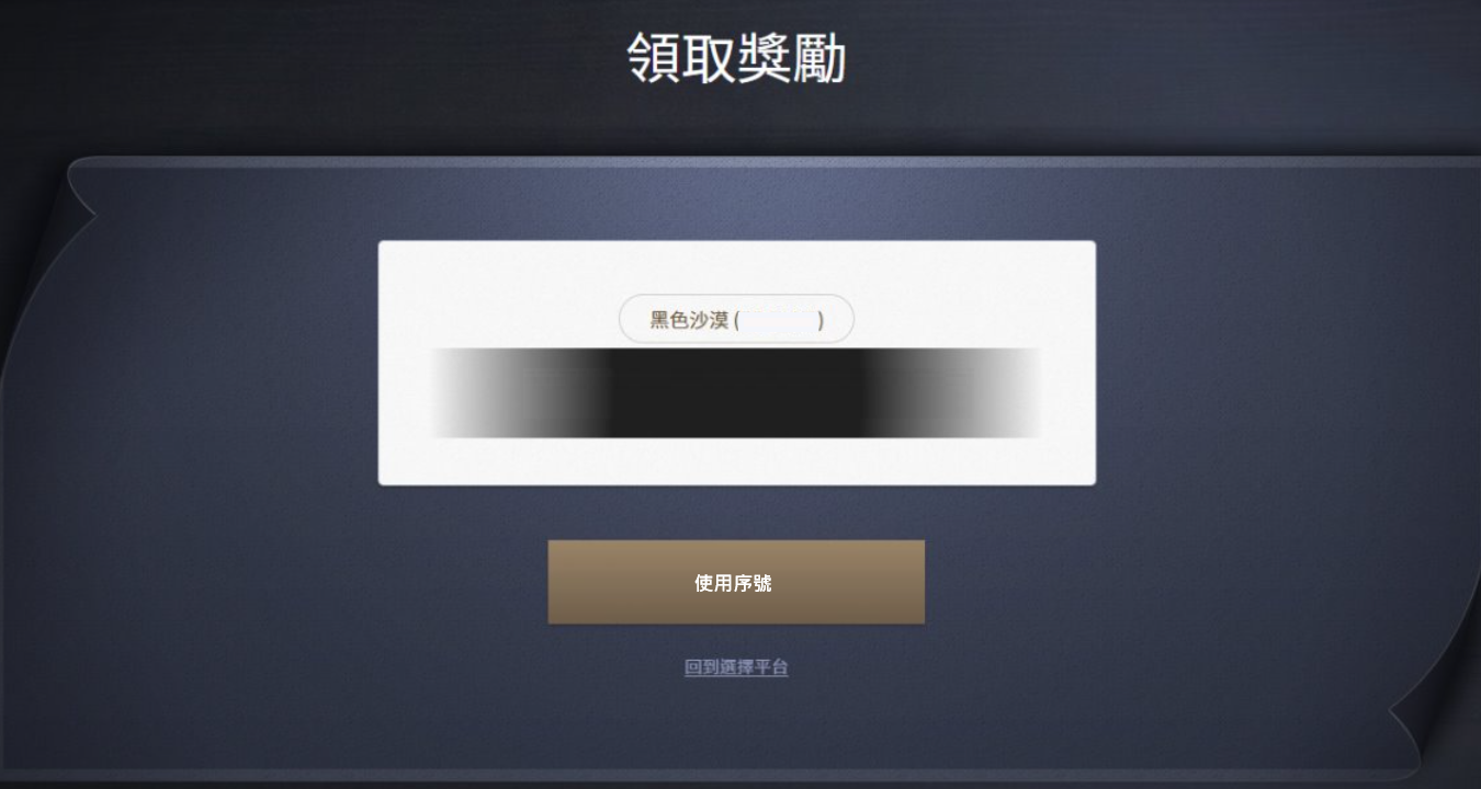 輸入序號後點擊[使用序號]按鈕,獎勵將會發送至遊戲內信件。