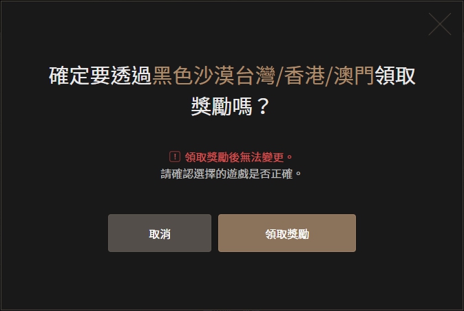 確認所選遊戲及地區,是否與欲領取獎勵的帳號資訊相符。最終確認無誤後,請點擊[領取獎勵]。