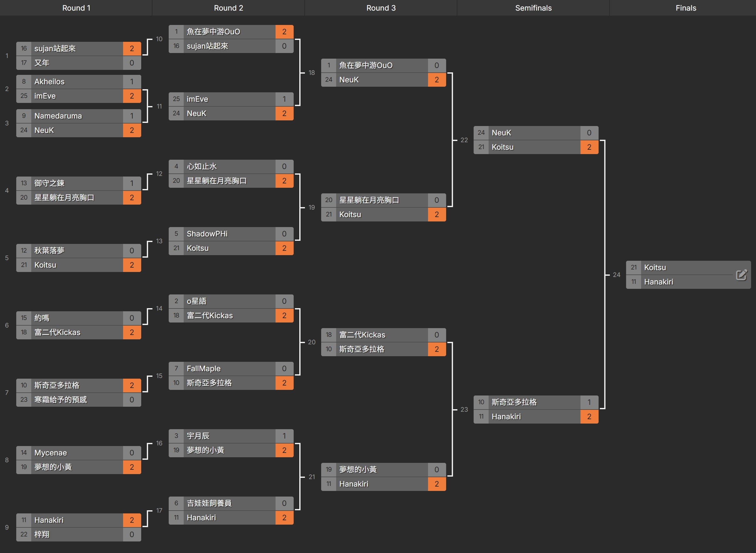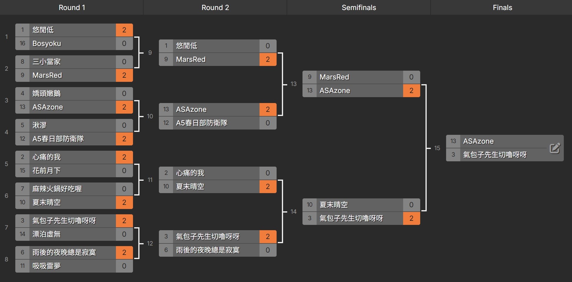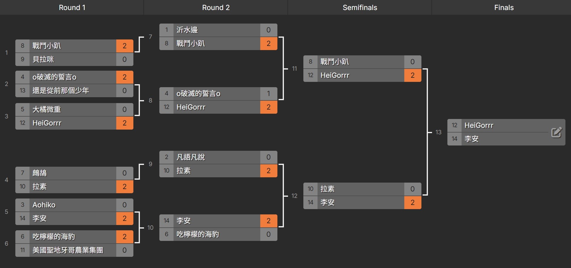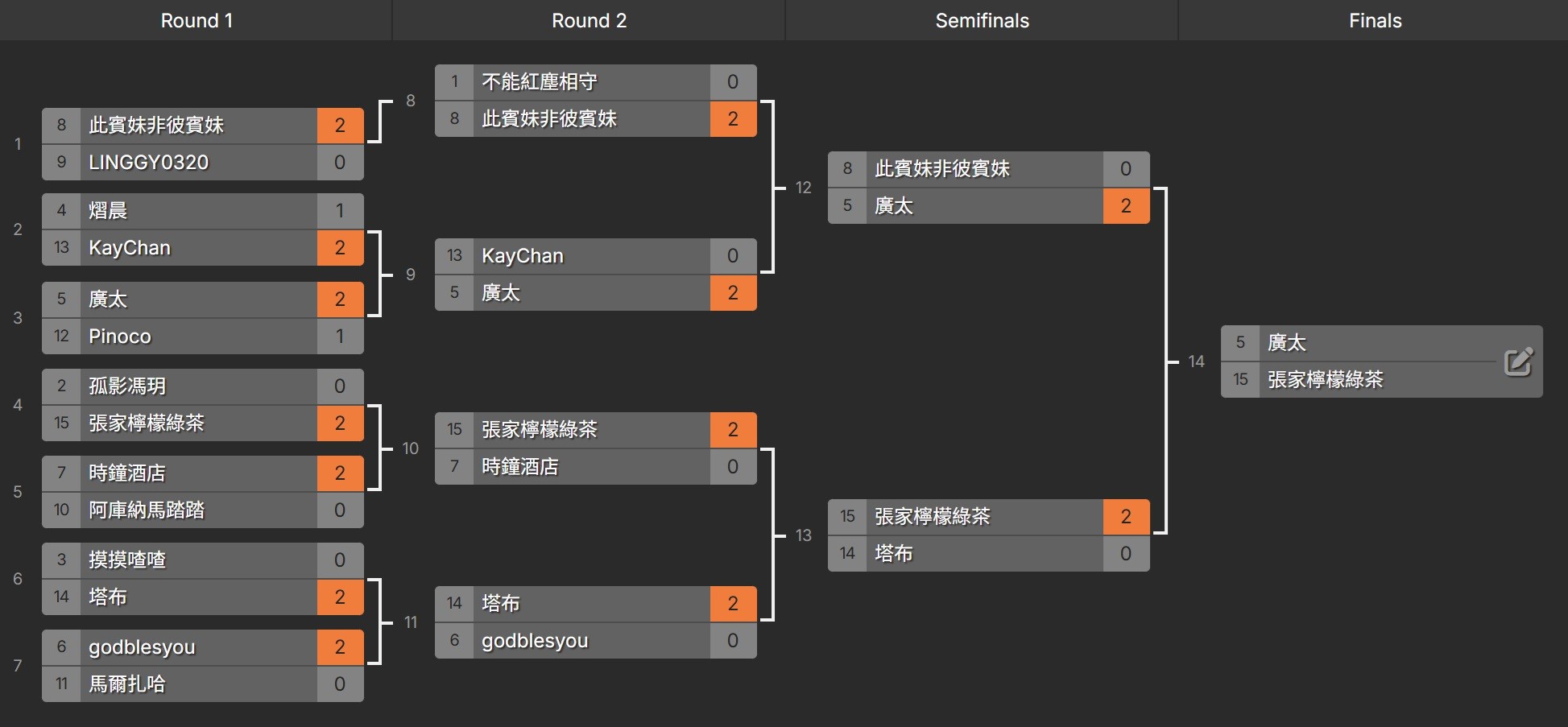 ※ 因報名人數關係,將會隨機抽取種子選手。