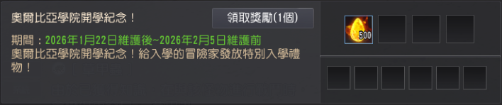 | 完成「[奧爾比亞學院]入學手續」任務 | ![]() 卡普拉斯的石頭 500個 |