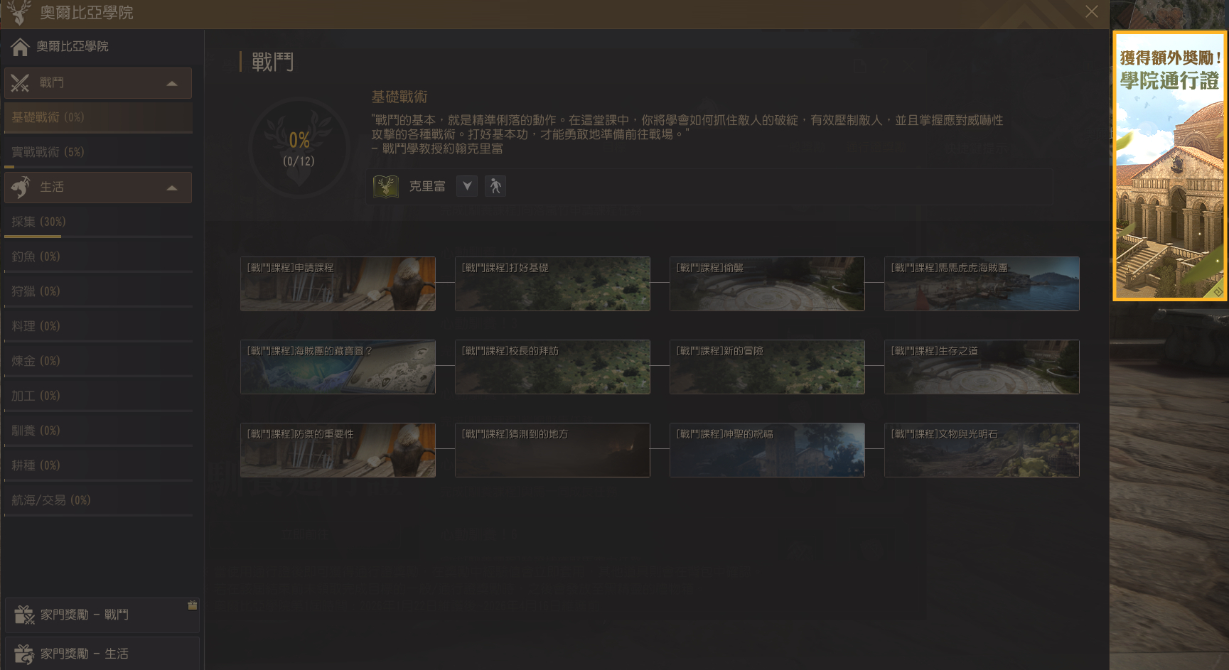 | 完成 [採集課程]向傑彼尼斯申請課程任務 |