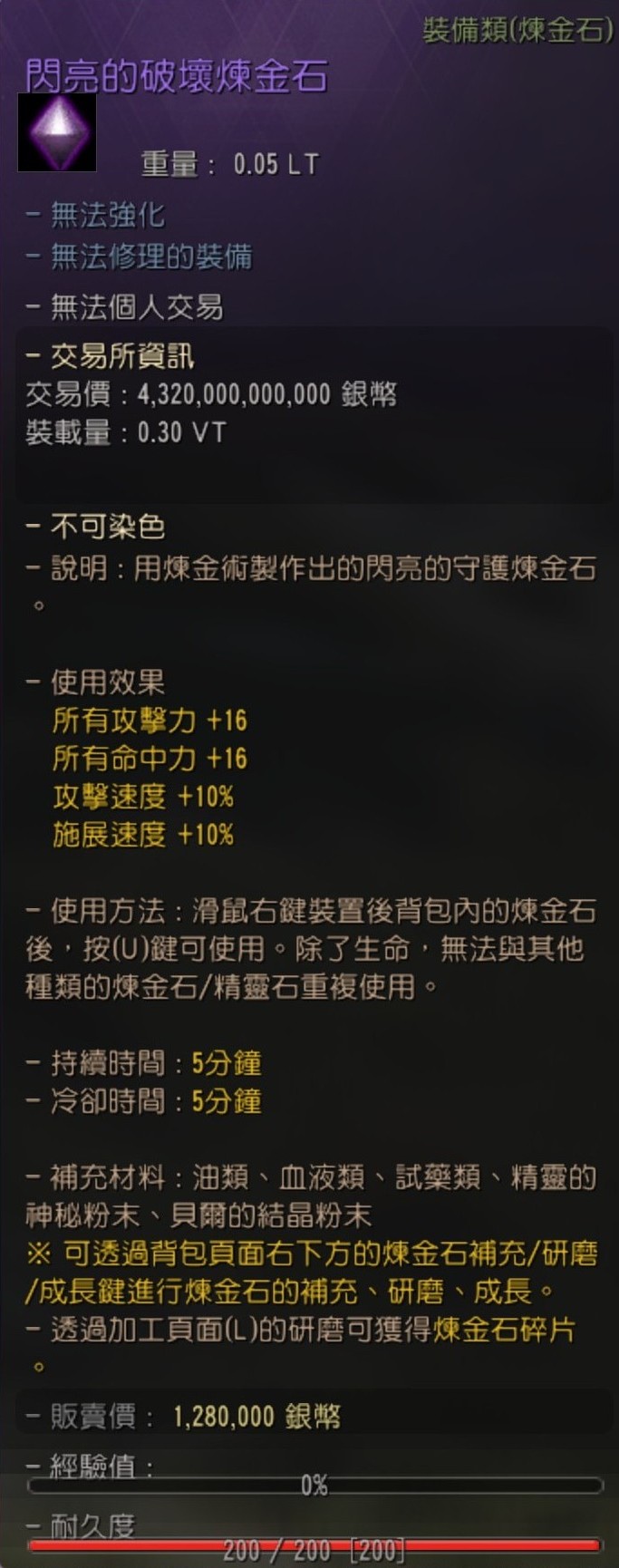 也就是說可獲得最強效果的煉金石就是前綴詞為「閃亮的」的紫色煉金石。
