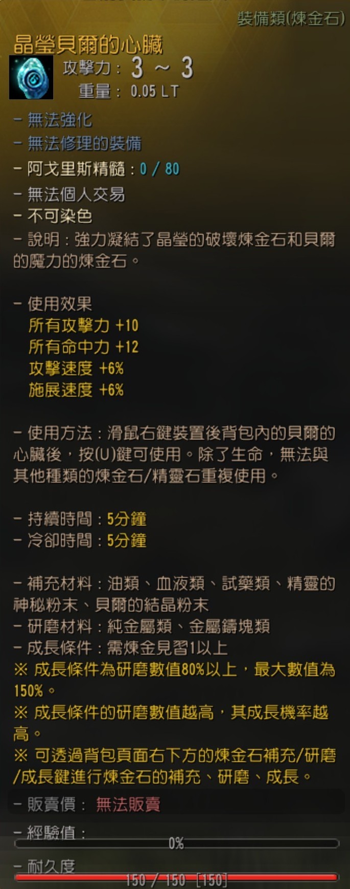 煉金石若是研磨累積80%~150%的經驗值 ,可以用「充盈的蒼空精髓」來成長。