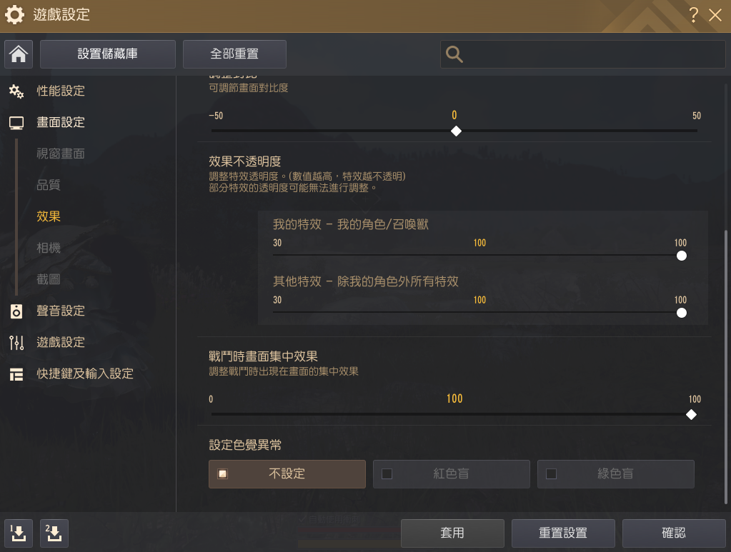 - 部分被判斷為與內容進行相關的重要特效將不受此設定影響,還請參考