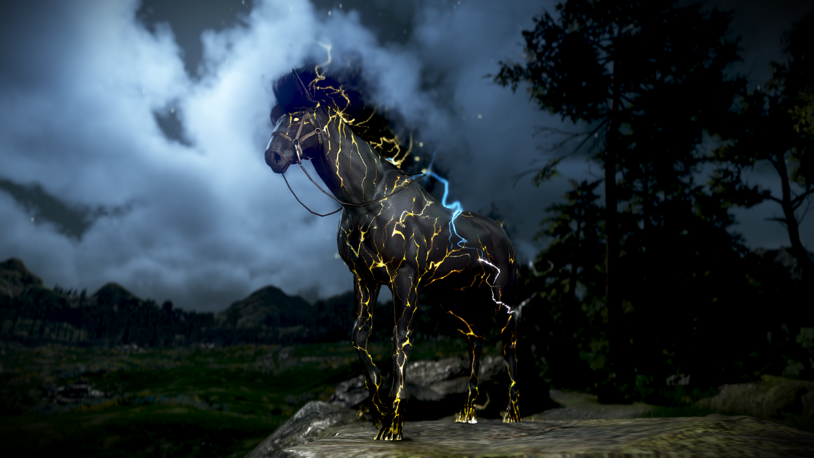 在地面引發雷電,發動閃電攻擊 在空中使用時,會與雷電一起降下,對周圍發動閃電攻擊 在地面上打擊成功時昏厥及墜馬效果