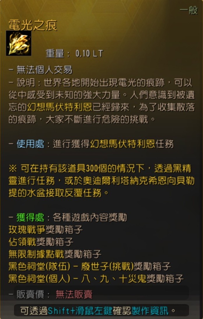 可獲得伏特利恩的道具「電光之痕」