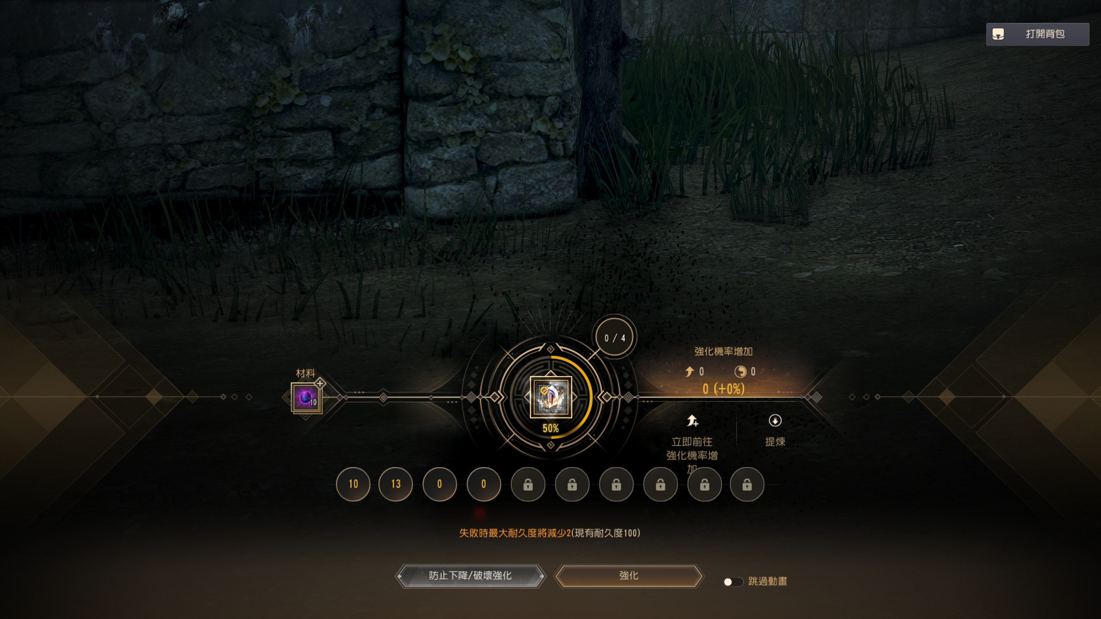 奈魯裝備到長(I)階段為止就算強化失敗強化階段也不會下降,從廣(II)階段開始強化失敗時強化階段會下降1階段。