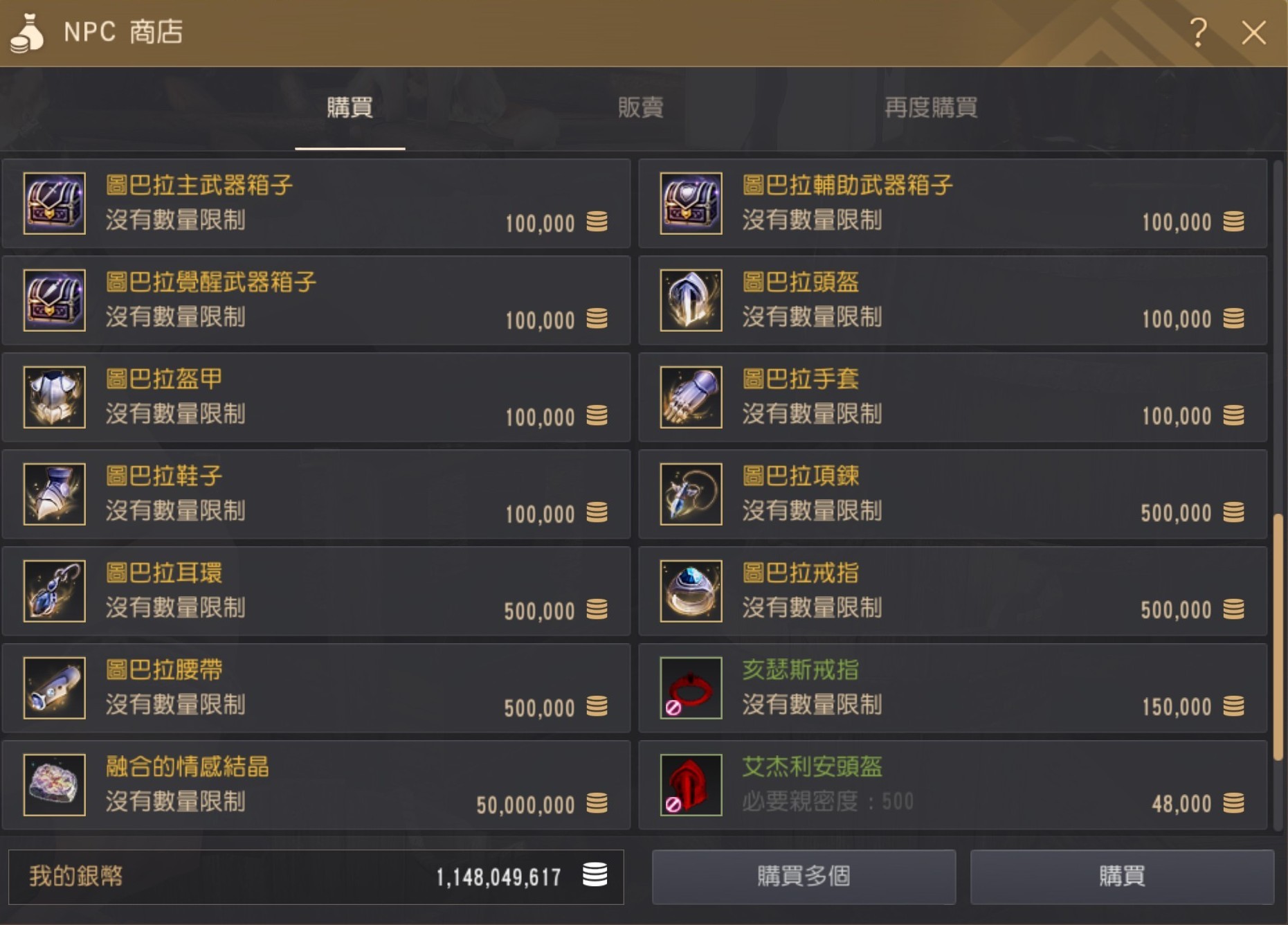 可以透過鐵匠NPC直接購買圖巴拉裝備與飾品。