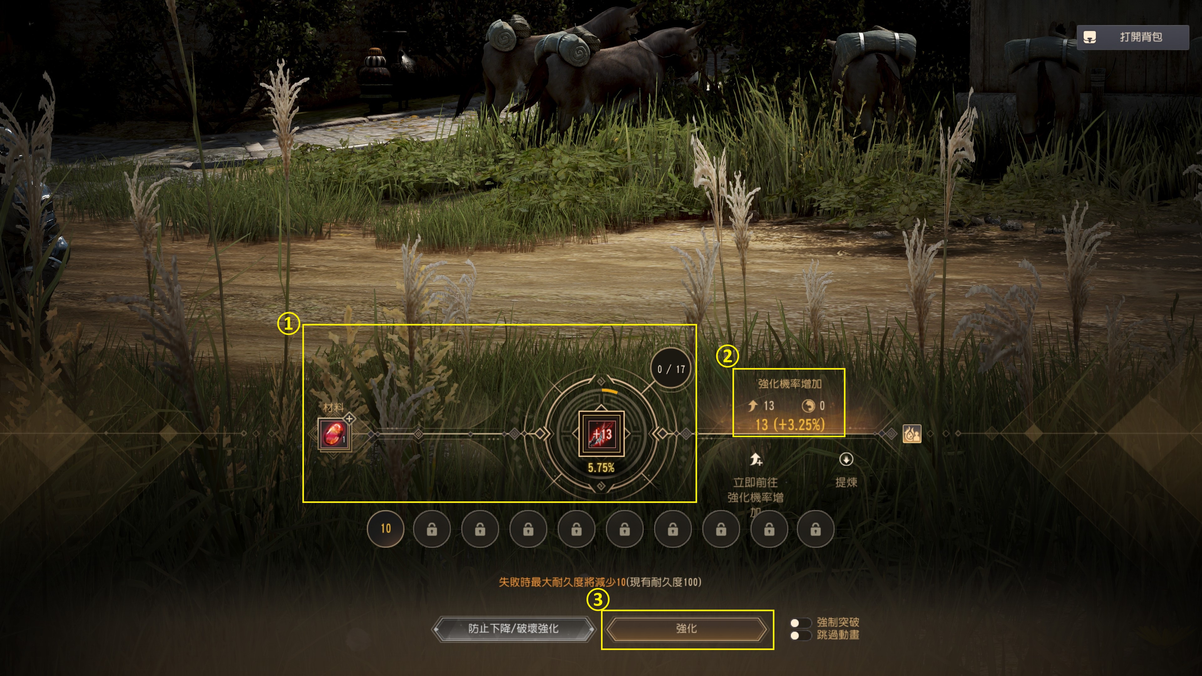 (飾品的話沒有安全強化區間,且強化失敗時裝備會被破壞。)