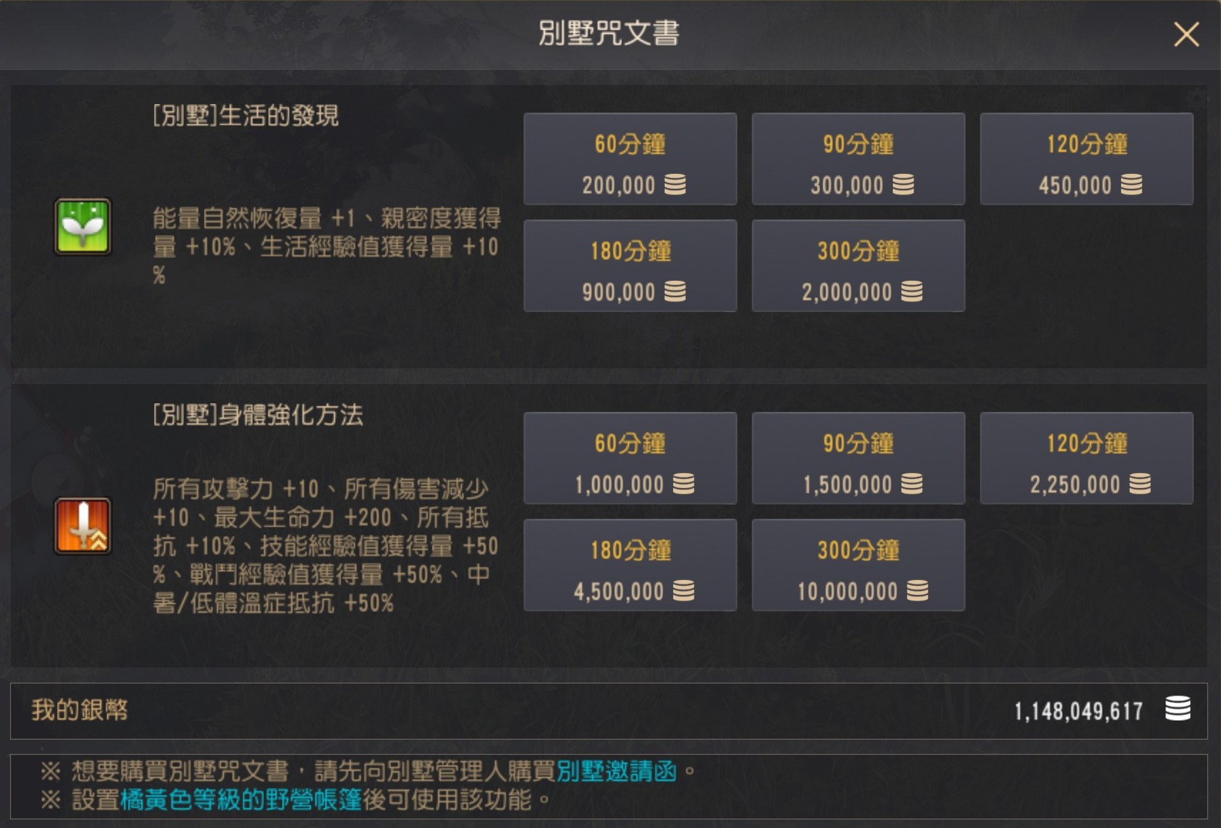 ※ 別墅增益效果相關詳細內容請確認別墅指南。