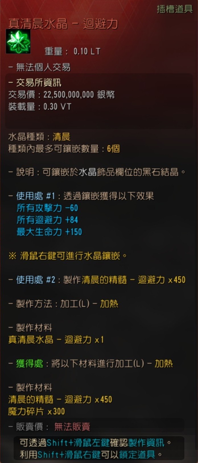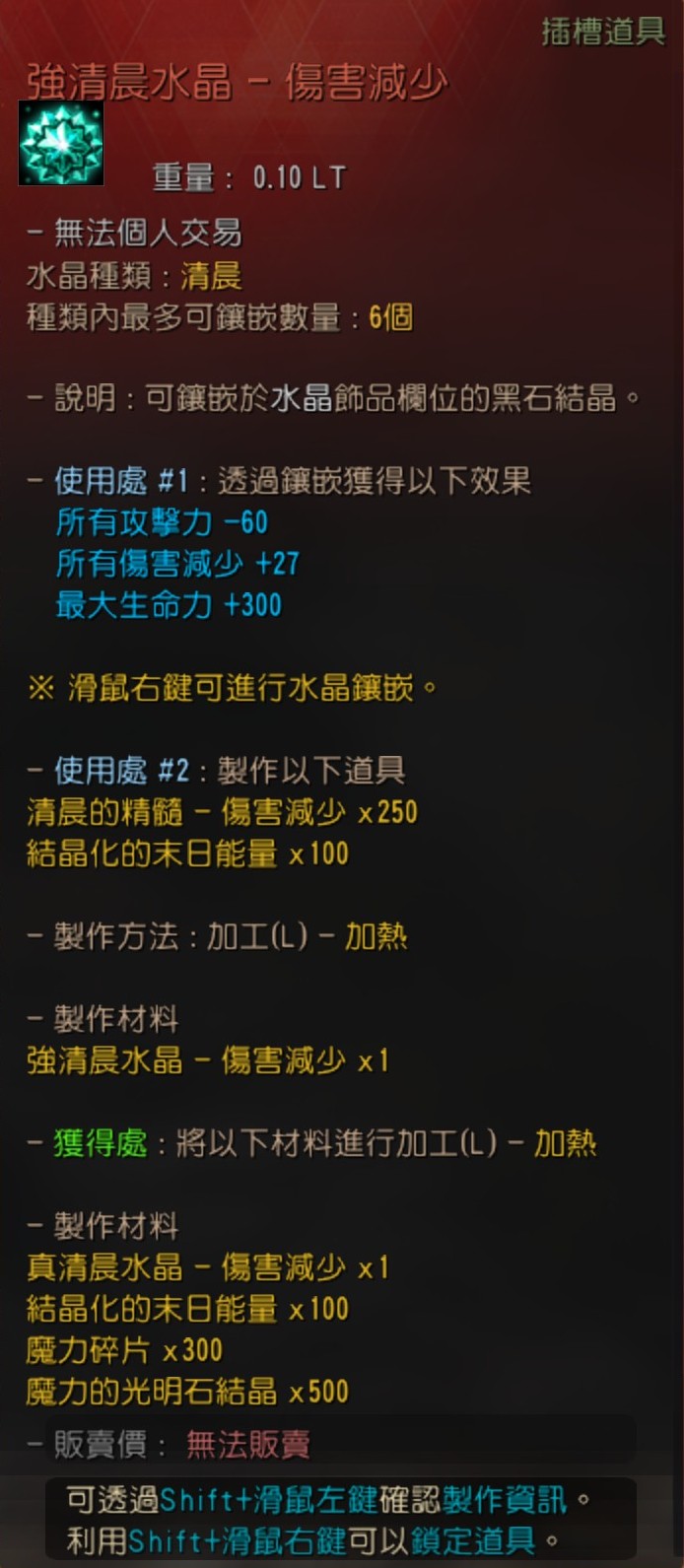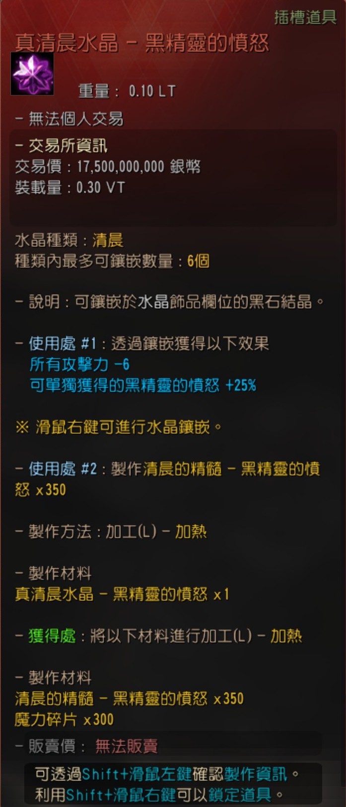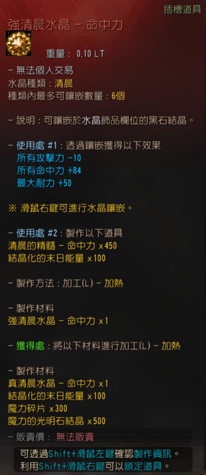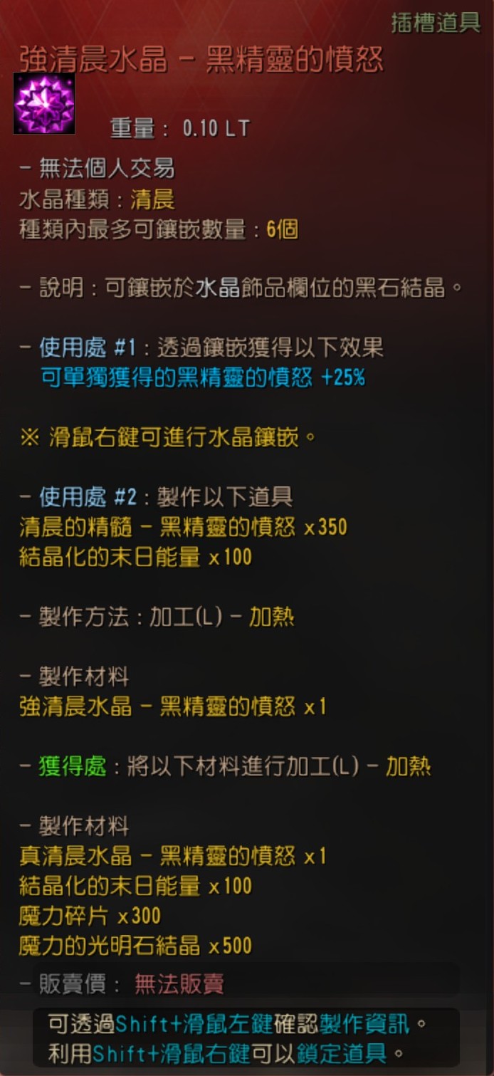 使用處 #1 : 製作卡拉札德飾品水晶(黑精靈的憤怒/命中力/傷害減少/迴避力)