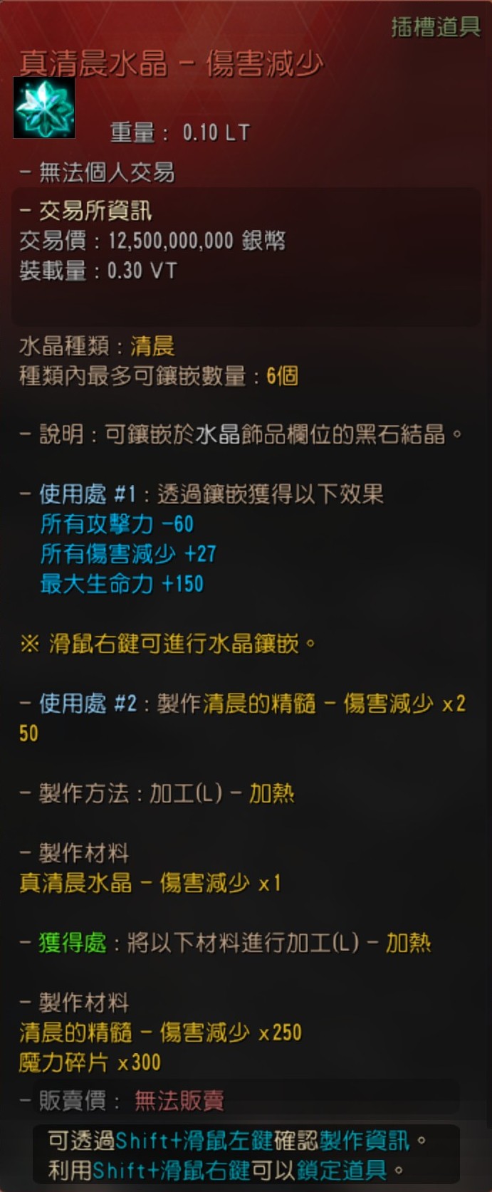 | 真清晨水晶 - 傷害減少 | 清晨的精髓 - 傷害減少 250個 | 魔力碎片 300個 | - |