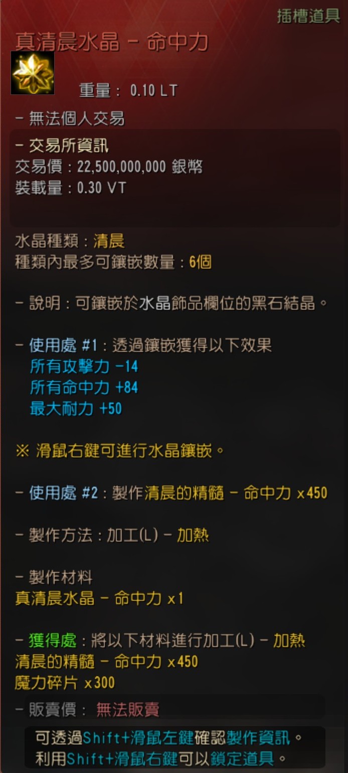 ![]() ![]() 本、原清晨水晶 - 所有攻擊力/黑精靈的憤怒/命中力/傷害減少/迴避力