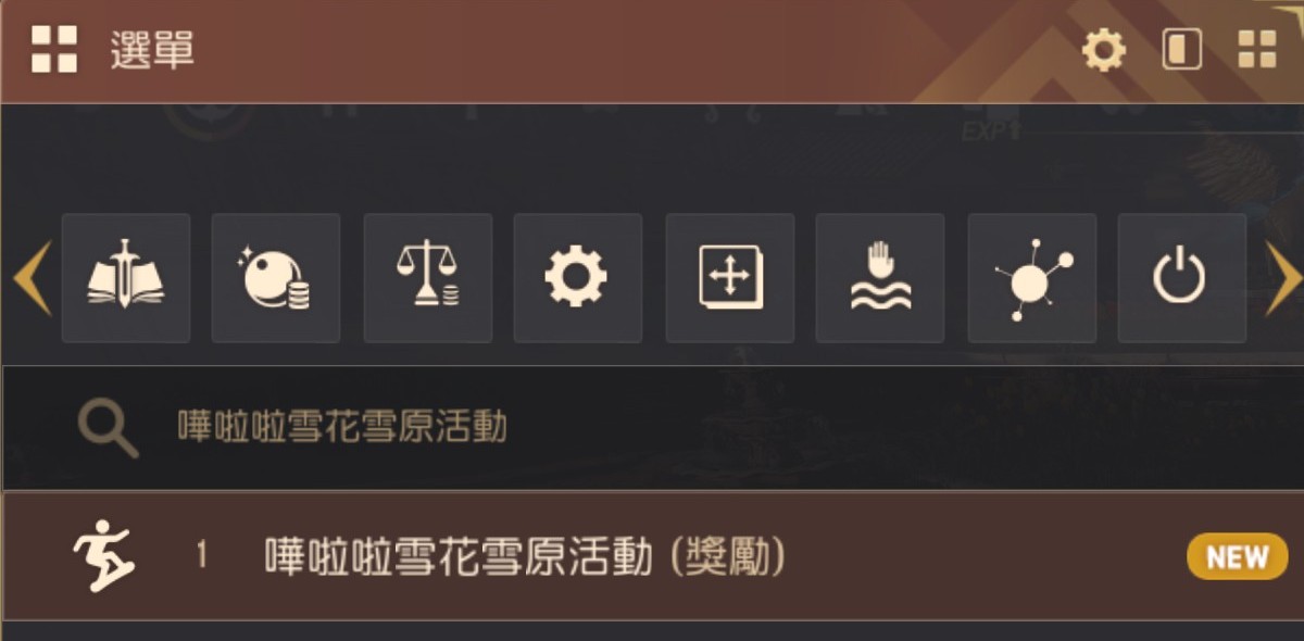 可透過選單(ESC) - 搜尋「嘩啦啦雪花雪原活動」進入活動UI。