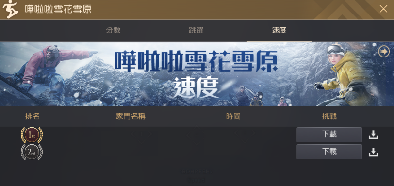 - 點擊「下載」 - 「挑戰」按鈕後,可挑戰排名前10的冒險家紀錄。(速度、跳躍模式)