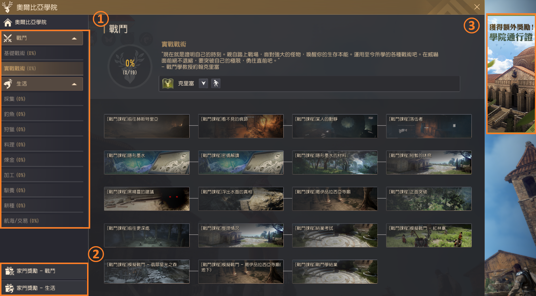 戰鬥課程獎勵