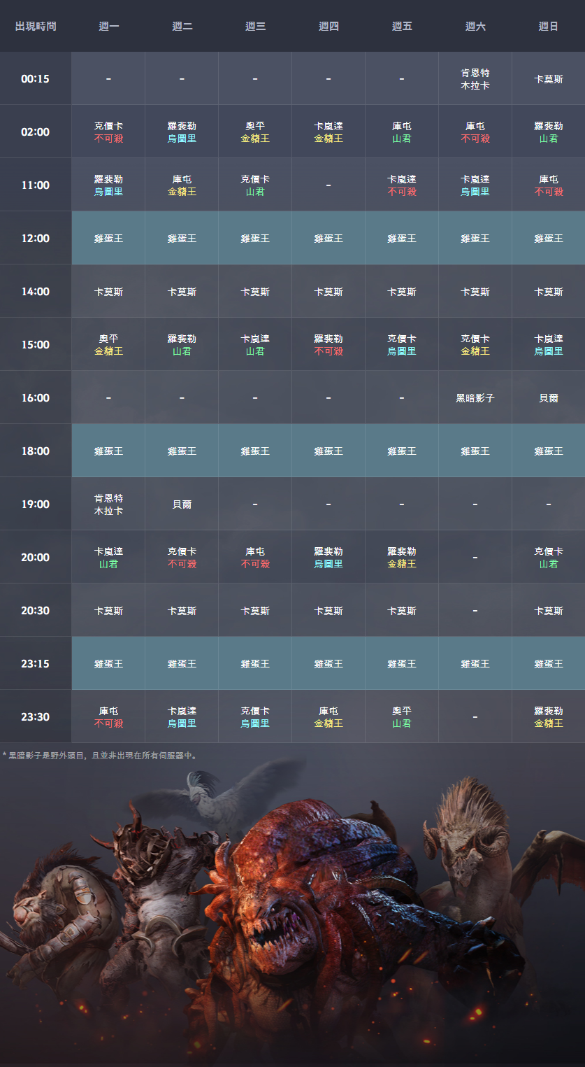 以下4種世界頭目。各頭目的出現區域如下。
