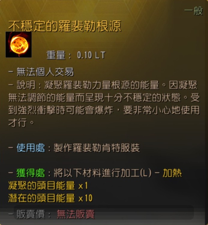 - 簡易煉金(L)東(V)羅裴勒肯特頭盔和坎蒂爾尼亞的結晶30個、不穩定的羅裴勒根源3個就可獲得封印的羅裴勒肯特頭盔。